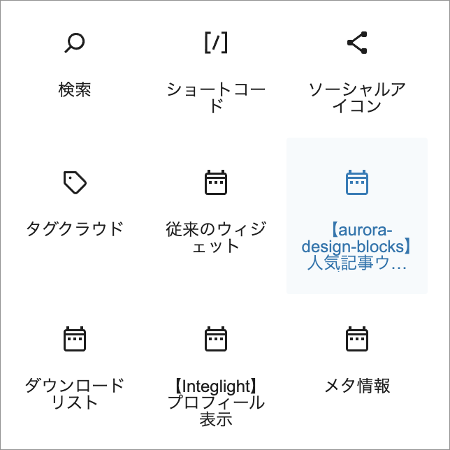 【aurora-design-blocks】人気記事ウィジェットを選択します。