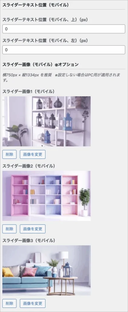 スライド画像を3枚まで設定できます。推奨サイズは1920px ×1080pxです。