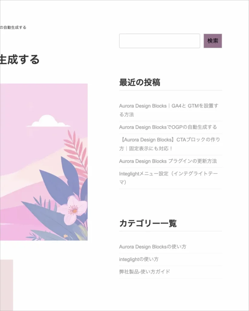 下記はサイドバー1に検索バーとカテゴリー一覧を作成した例です。