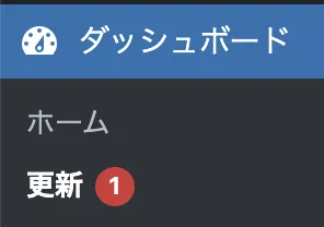 WordPressのダッシュボード左にある「ダッシュボード > 更新」に、数字付きの赤いバッジが表示されていたら、テーマやプラグインの更新が利用可能です👇
