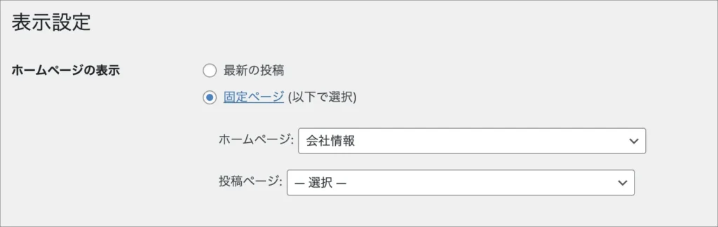 トップページにしたい固定ページを選択。
