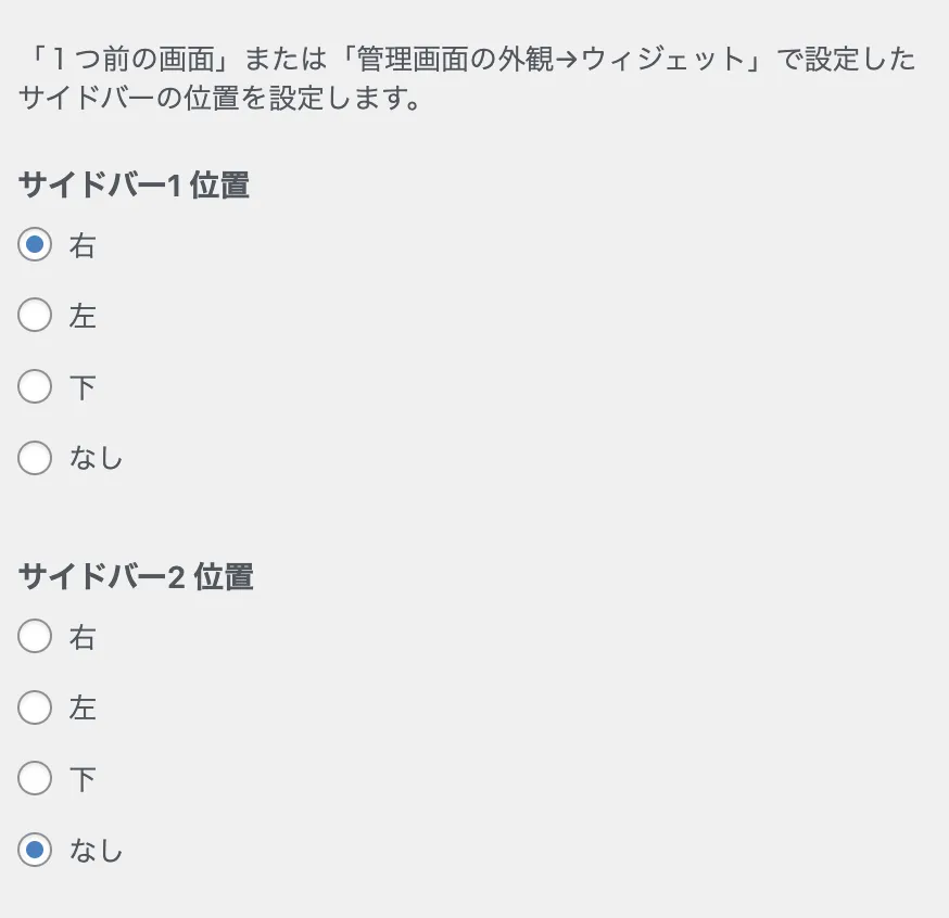 「サイドバー設置設定」で、サイドバーの表示位置を選びます。