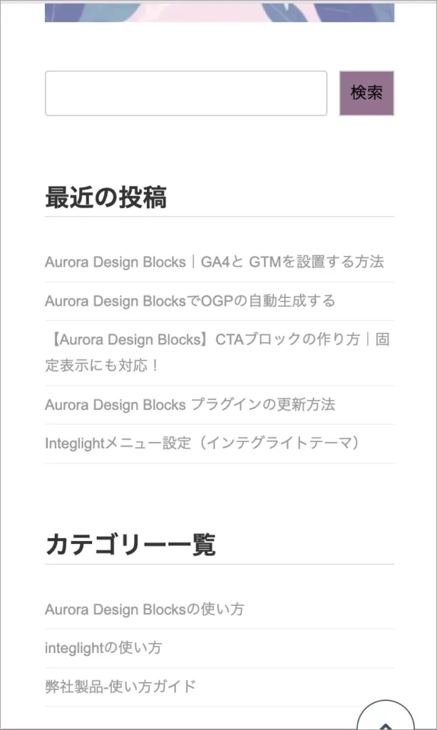 下記はサイドバー1に検索バーとカテゴリー一覧を作成した例です。