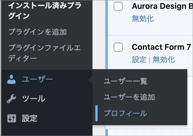 WordPress管理画面の左メニューから