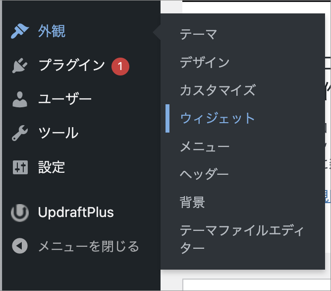 WordPress管理画面から「外観」→「ウィジェット」でサイドバーを作成します。