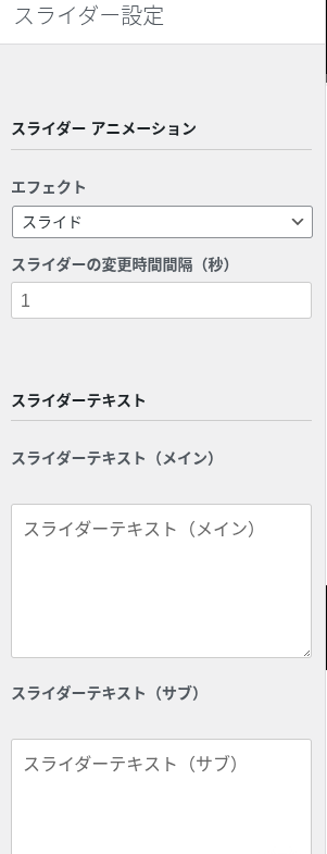 スライダーの変更時間間隔(秒)3秒、5秒などお好みで